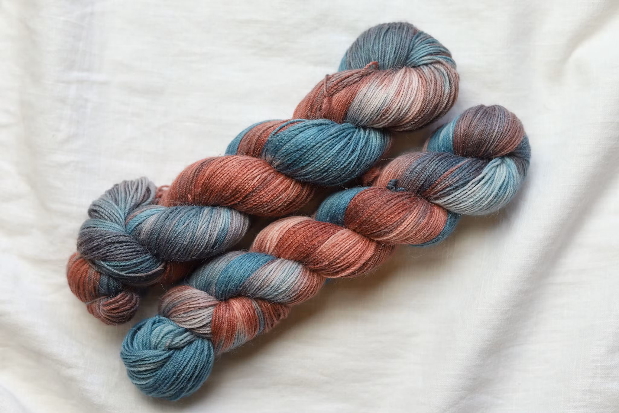 Kom ihåg att när du stickar med hand färgade garner är rekommendationen att randa härvor i samma färg med varandra för att inte få en markant övergång vid byte till nytt nystan.