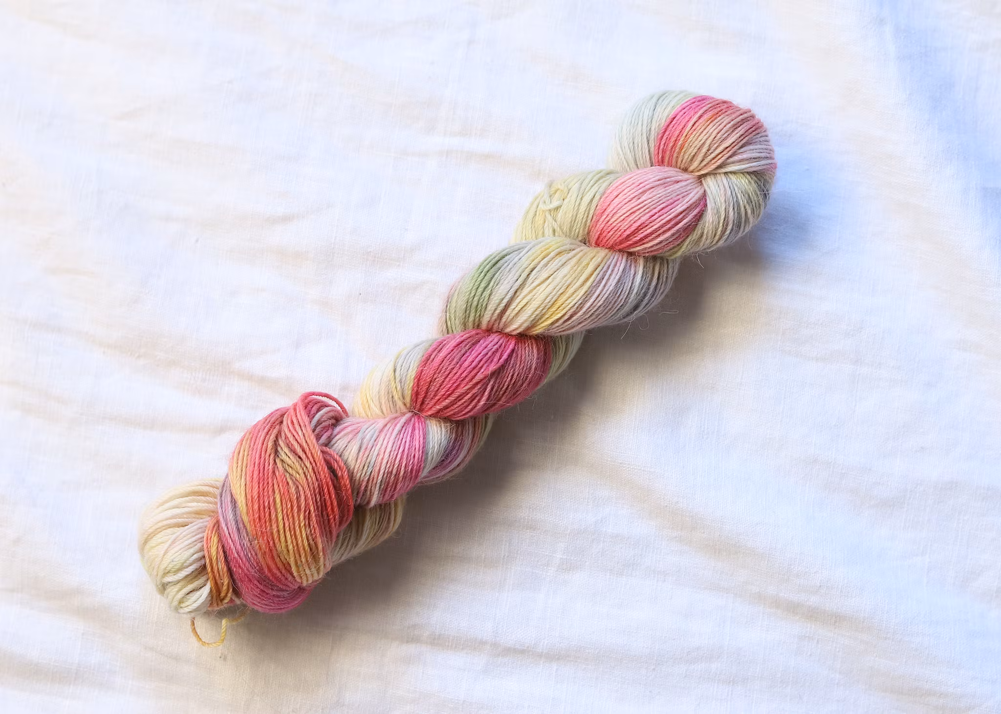 Kom ihåg att när du stickar med hand färgade garner är rekommendationen att randa härvor i samma färg med varandra för att inte få en markant övergång vid byte till nytt nystan.